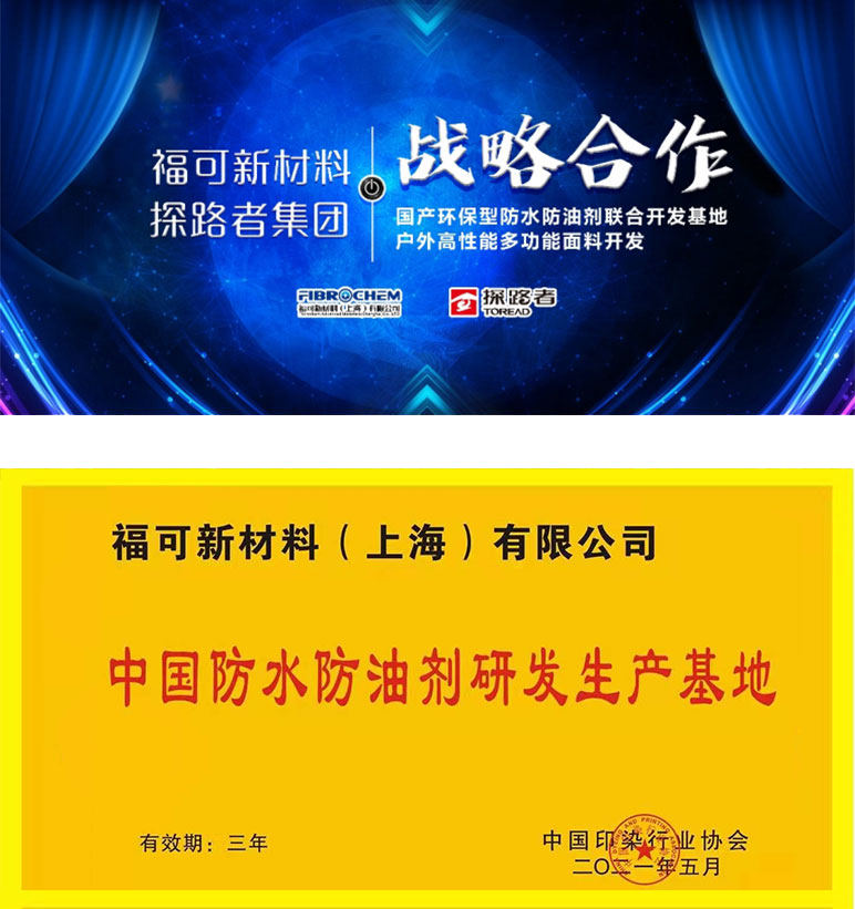 2021年5月,公司被中国印染行业协会正式授予“中国防水防油剂研发生产基地”。