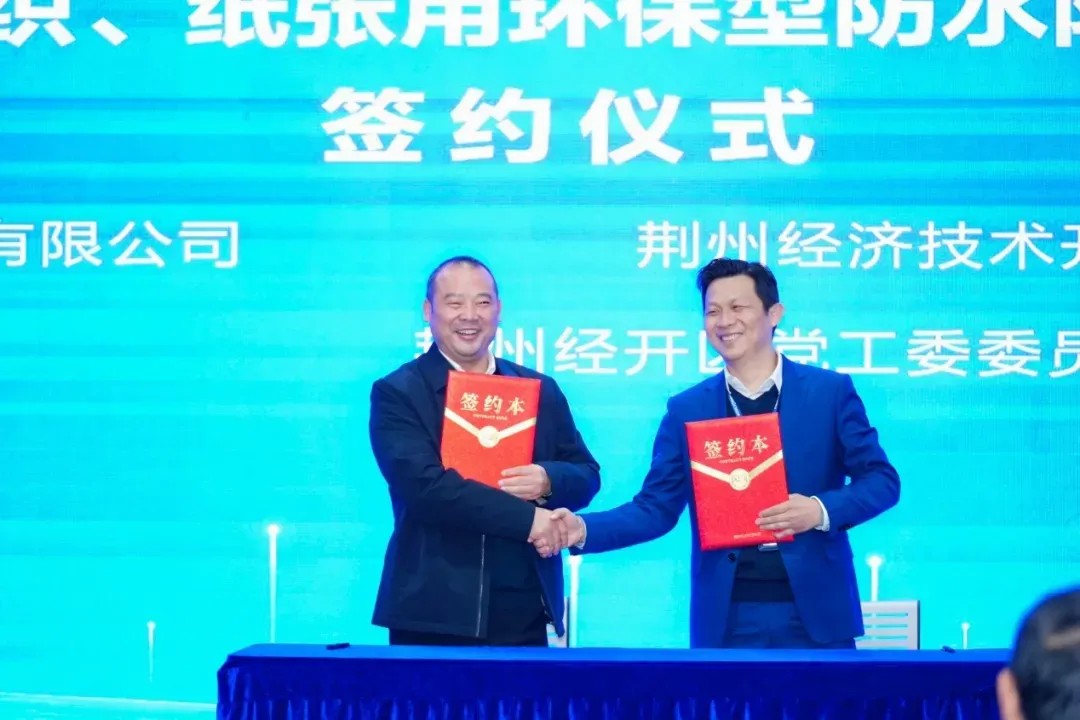 庆典大会现场,福可新材料(上海)有限公司和江苏毅达资本股权投资基金管理有限公司,进行了Pre-A轮融资投资签约仪式。同时和荆州经济技术开发区“年产6000吨纺织、纸张用环保型防水防油剂产业化项目”,这标志着福可新材料全新的专业化、智能化防水防油剂生产基地落户湖北荆州,预计26年9月投产。